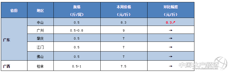 最近華南地區(qū)魚價行情出現明顯的上漲勢頭,多個品種出現搶魚現象。目前生魚已經突破10元/斤,苗種更是被瘋搶,黑芝麻一度賣到600元/萬尾。加州鱸魚的塘頭也是魚車排隊搶魚,9兩起的塘頭價賣到20元/斤。據流通商介紹,目前華南地區(qū)的鯽魚行情也是繼續(xù)呈現穩(wěn)中有升的勢頭,目前中山地區(qū)半斤以上的鯽魚最新塘頭賣到8.3元/斤,較之前上漲0.3元/斤。目前華南大部分地區(qū)的鯽魚塘頭價基本還是保持平穩(wěn),其中廣西武宣地區(qū)半斤的鯽魚塘頭賣8元/斤;桂林地區(qū)賣7-7.5元/斤;廣東江門地區(qū)半斤的鯽魚塘頭賣7-8元/斤,市場賣12元/斤,基本還是維持上周水平。