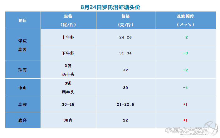 時(shí)至8月下旬,各地羅氏沼蝦存塘量減少,市場(chǎng)供應(yīng)緊張。在此背景下,各地羅蝦價(jià)格出現(xiàn)了明顯差異,廣東地區(qū)蝦價(jià)大幅下降,江浙區(qū)域蝦價(jià)仍然維穩(wěn)甚至上漲。廣東從業(yè)者表示,市場(chǎng)消費(fèi)能力還是很弱,有蝦無市,所以價(jià)格下跌明顯。江浙從業(yè)者表示,今年區(qū)域內(nèi)的羅蝦產(chǎn)量不高,所以價(jià)格較為穩(wěn)定,但后續(xù)上漲空間有限。寧波流通從業(yè)者表示,近段時(shí)間市場(chǎng)上較少有羅蝦身影,只有少部分養(yǎng)殖戶自行抓蝦販賣。