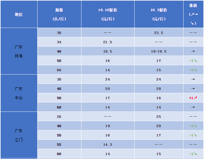 其他市場,目前江浙兩地行情都表現平穩狀態,即大蝦價格較高,中小蝦小幅下降。今年江蘇地區高產塘口減少,外塘成功率走低,目前有大蝦的、有存量的更看好10月下旬的蝦價,因此國慶期間也有不少塘口惜售,節后價格維穩。華北如山東、河北、天津等地外塘蝦均已接近尾聲,節后市場蕭條,價格回落。但是工廠化養蝦的養殖戶則表示外塘結束后,就是工廠化蝦價上升的時候了,后市漲價的可能性也會逐步增大。