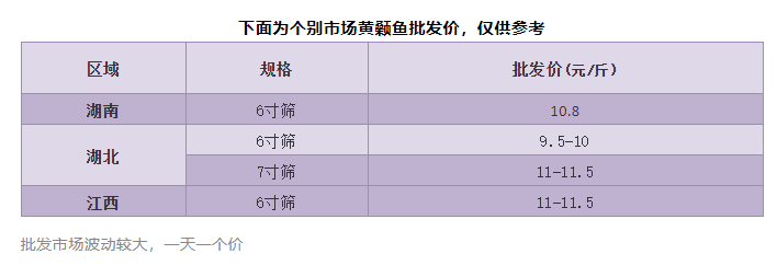 湖北本周價格微跌0.3元/斤。據魚販反饋這兩天湖北魚相對比之前好賣了些,賣大魚的多了,但是小魚便宜,總體銷量持平,魚車以江西、安徽、河南等武漢周圍的城市的魚車過來拉魚為主,白沙洲市場一天大概消化7-8萬斤左右。目前6.5寸篩3.8-4兩頭10元/斤,6寸篩9元/斤,7寸篩10.5元/斤。受新魚上市影響,有流通商認為后市可能存在跌價風險。
