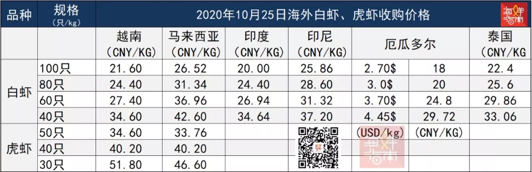 注:以上產品為當地蝦類的塘頭收購價,匯率按當地貨幣實時兌換人民幣計算