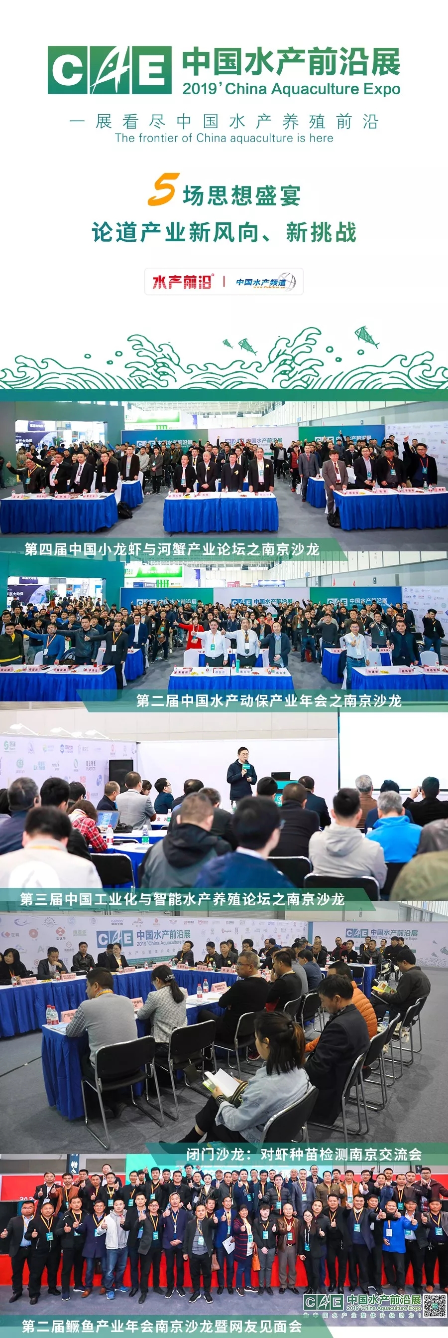 2019年3月30-31日,2019’中國水產(chǎn)前沿展(簡稱“前沿展”或CAE)在南京國際博覽中心2號(hào)館成功舉辦,為中國水產(chǎn)業(yè)整體升級(jí)助力!展館面積總計(jì)約1萬平方,標(biāo)準(zhǔn)展位300余個(gè),共有近200家行業(yè)優(yōu)秀苗種、養(yǎng)殖、飼料、動(dòng)保、設(shè)備、原料、包材等產(chǎn)業(yè)鏈上下游優(yōu)質(zhì)企業(yè)展商參展。展會(huì)兩天累計(jì)超8萬人次通過現(xiàn)場(chǎng)網(wǎng)絡(luò)圖片直播的方式,觀看前沿展會(huì)的盛況,目前記錄已超11萬。現(xiàn)場(chǎng)也吸引了近萬人次專業(yè)觀眾的參觀和交流,尋找新的降本增效方案。