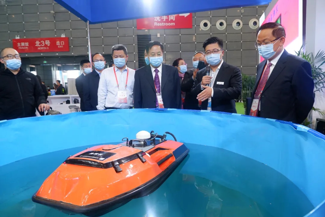 安徽省展區中,各市突出了地方漁業特色,以特裝充分展示本地現代漁業和漁業科技發展成果,并重點展示了安徽特色水產品,包括合肥龍蝦、萬佛湖鳙魚、當涂河蟹、蚌埠甲魚等名特優水產品等,此外,稻漁綜合種養模式生產的漁米產品也均有展示。展區同時還展示了安徽漁政信息化建設成果,如圍繞安徽省長江流域重點水域禁捕工作,展示了以小目標雷達、多光譜高清光電為主要探測手段,各站點互聯互通、全省“一張網、一張圖、一平臺”的多元智能感知漁政信息系統。
