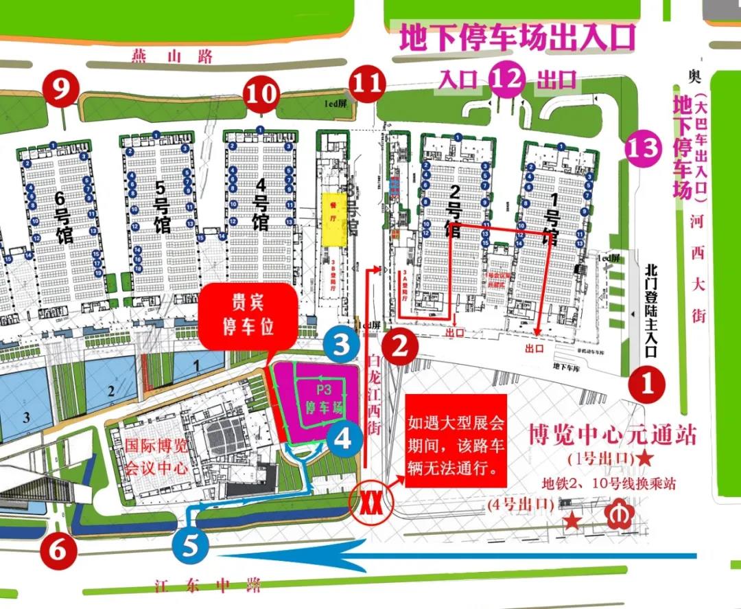 1、布撤展期工作及搭建車輛行駛路線以此為準:前往保雙街排隊收費辦理再前往12號門卸貨,切記是12號門1、2號館。7座以下的私家車免費2小時卸貨時間。貨車上只留司機一人,其他人員從13號門進入展館。