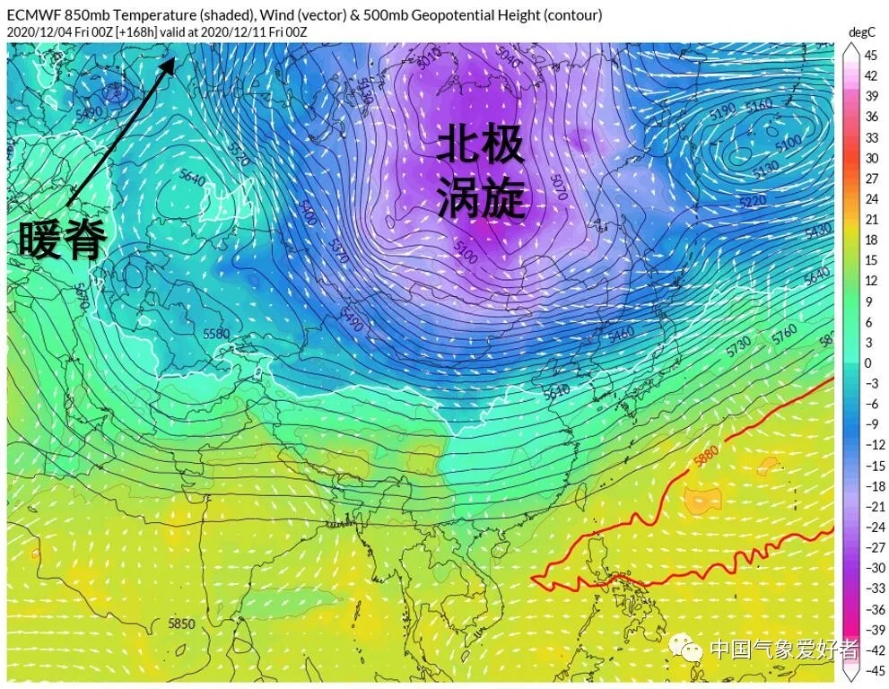 2020年12月11日,北極渦旋雖強(qiáng),但體積很大,暖脊力量薄弱,因此冷空氣主力難以徹底南下。中氣愛(ài)制作