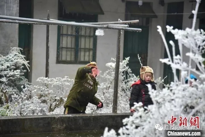12月15日,因遭遇超10攝氏度的“斷崖式”降溫,廣西柳州市融水苗族自治縣桿洞鄉(xiāng)堯告村的山區(qū)一片冰雪景象,南國(guó)的山村變?yōu)榱恕把┼l(xiāng)”。王以照攝