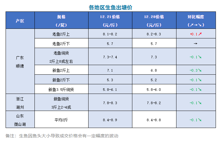 全線下跌,2020年12月28日各地生魚最新塘頭報價