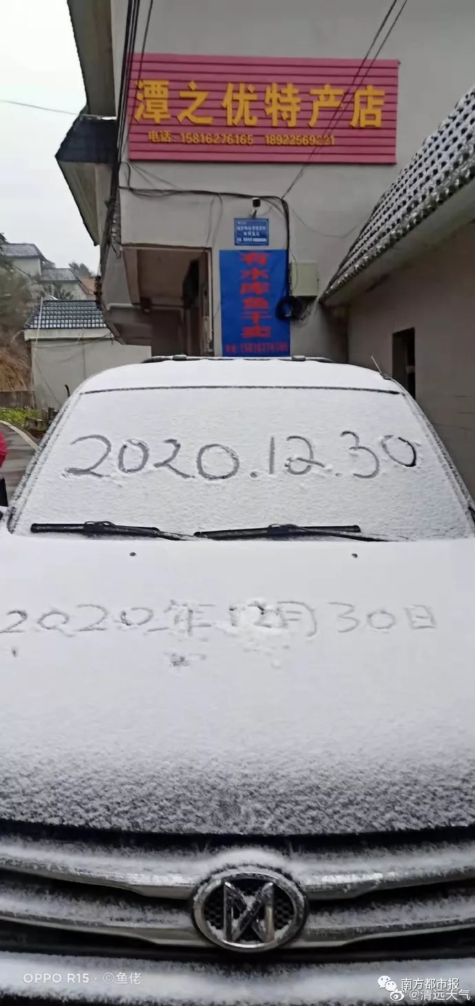 昨夜今晨霸王級寒潮挾大風抵達廣東!今早(12月30日)寒冷橙色預警信號生效,多地氣溫速凍!廣東清遠等地下雪了,大風最強可達10級。