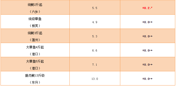 大草魚:價格保持平穩,4斤上規格為6.6元/斤;5斤上規格為7.1元/斤。