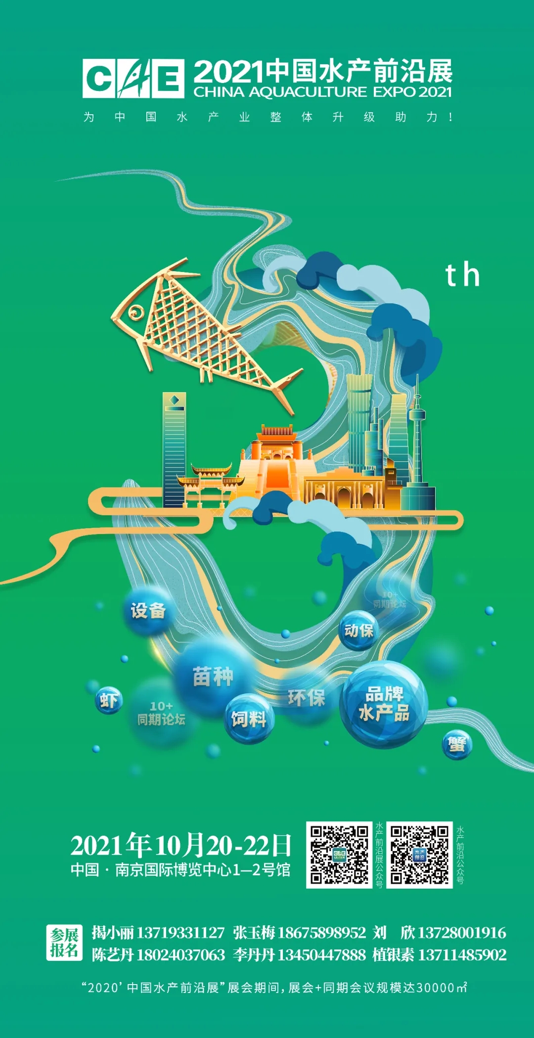 2021年10月20日-22日,2021’中國水產前沿展&2021中國水產大會將于中國·南京國際博覽中心1-2號館舉辦,計劃展會+同期會議規模30000+㎡,同期行業大會10+場,整體宣傳覆蓋1000萬+人,預計將有350+家全球前沿企業、20000+專業觀眾參與。