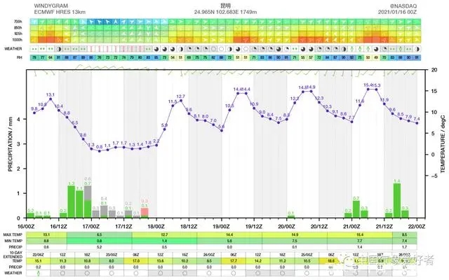 ECMWF對昆明的降雪預判,可見17日上午可能有雪或雨夾雪。中氣愛制作