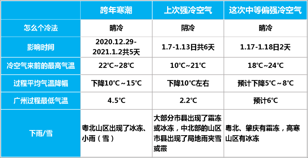 與上次陰冷比,這次是個晴冷,冷空氣影響時間沒有上次長,影響后的最低溫度也沒上次低。與跨年寒潮比,這次強度不及,畢竟該降的也都降過了
