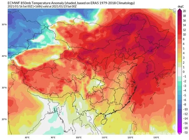不過,這次寒潮由于冷源南下得不徹底,目前來看是要比之前的“小寒寒潮”威力要弱的,對于我國南方的影響也要小一些。超級計算機的預測認為,在寒潮走后,隨著青藏高原南側轉為南支槽,在大寒節氣前,大量暖濕空氣將涌入我國,因此將掀起我國中東部的大回暖,超級計算機850百帕氣溫距平預報(氣溫距平指的是該時期氣溫與常年同期平均值之間的差異)認為我國大部分地區氣溫都將是偏暖狀態,局地偏暖超過15度!