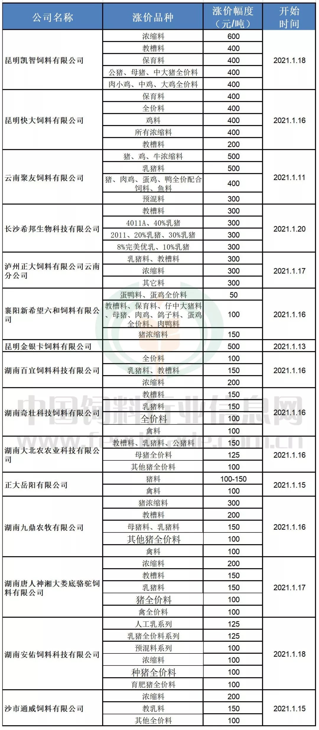 1月18日又有料企宣布漲價,最高漲600元/噸