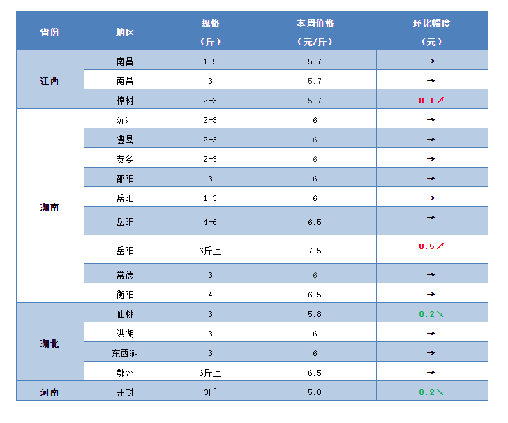 本周華中地區的草魚行情整體上趨于穩定,經過一輪大漲之后,近期局部地區的行情開始出現小幅調整。