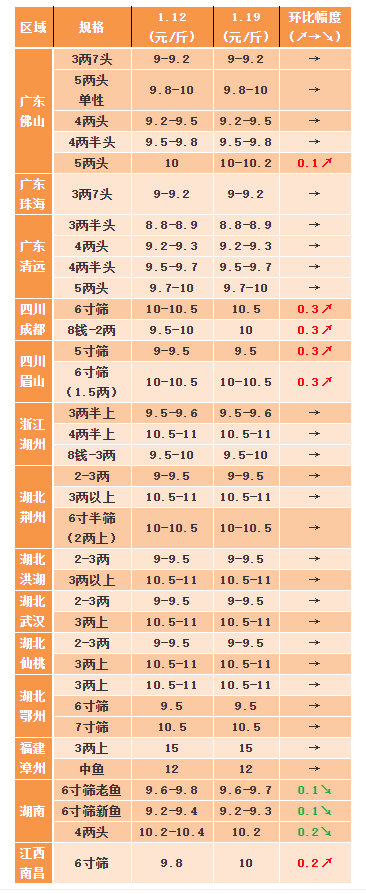 1月19日各產(chǎn)區(qū)塘頭報(bào)價(jià)