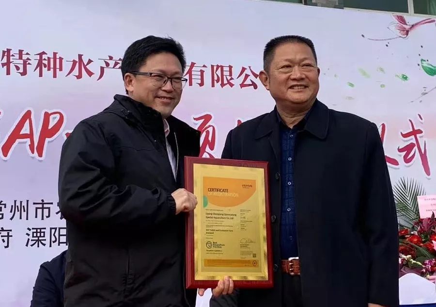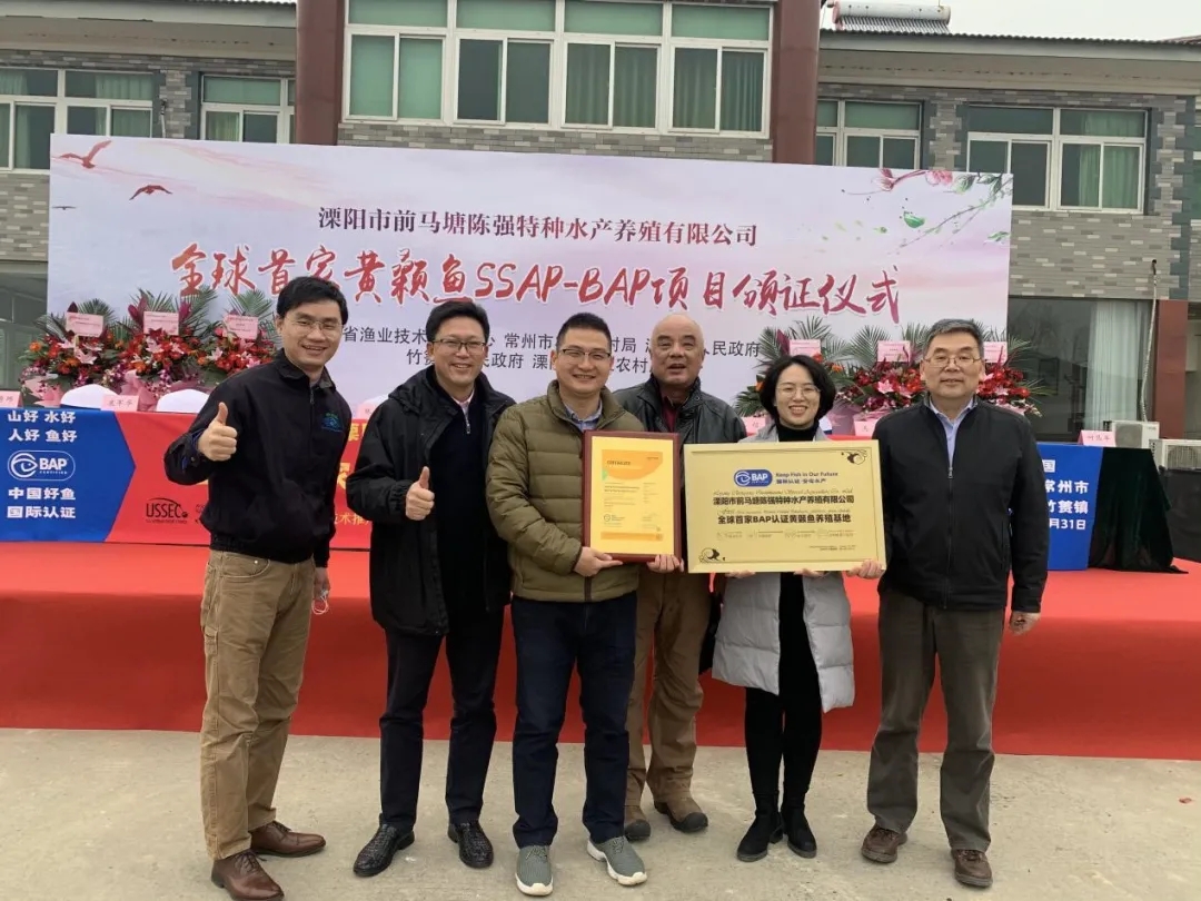 1月31日,全球首家黃顙魚SSAP-BAP項目頒證儀式在溧陽舉行,溧陽市前馬塘陳強特種水產養殖有限公司正式通過BAP標準嚴格審核,成為全球首家BAP認證黃顙魚養殖企業。