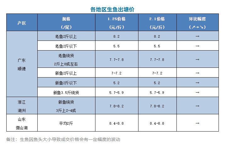 保持穩定,2021年2月1日各地生魚最新塘頭報價