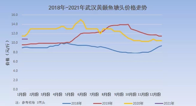 2018-2021年湖北武漢3兩上黃顙魚成品魚價格走勢