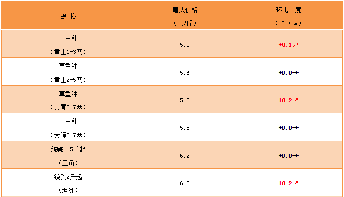 中國水產頻道原創報道,草魚種:本周草魚種價格保持穩定,天氣好益于投喂,市場成交量增加,后市看好,建議養戶開春做好消毒保健等工作,適時上市。