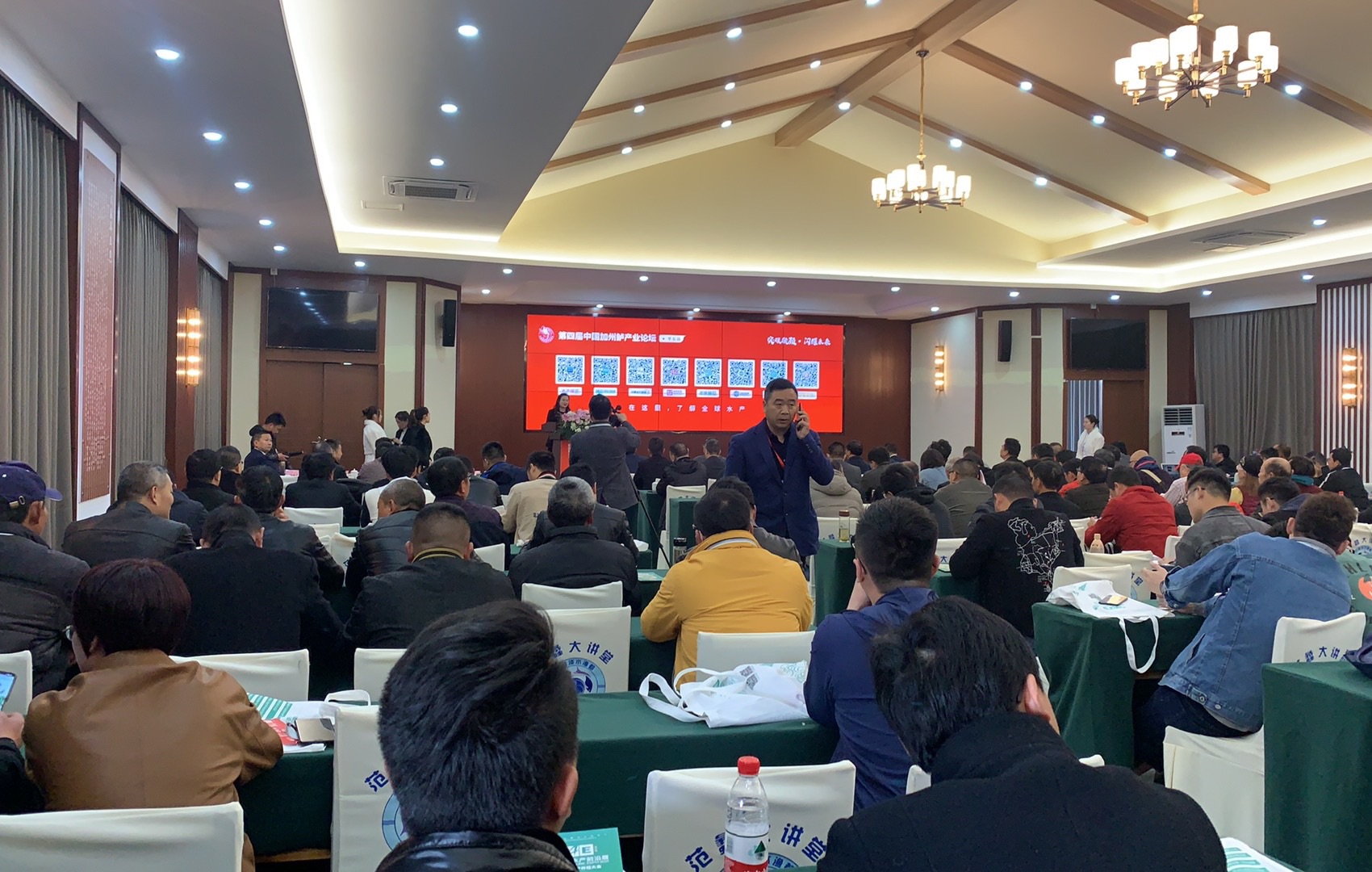 湖州師范學院葉金云副校長,蘇州大學葉元土教授,浙江省水產技術推廣總站馬文君副站長,南潯區菱湖鎮人民政府李建平鎮長,中國漁業協會副會長、品牌分會常務副會長兼秘書長、湖州市南潯區菱湖漁業協會沈學能會長,湖州市水產協會金淑斌秘書長,上海海洋大學李松林副研究員,菱湖鎮公共事業服務中心蔣國民主任,南潯區菱湖鎮新聯會沈曉龍會長,江蘇農牧科技職業學院袁圣教師,陳邑村-農業農村部鱸魚示范村金輝書記,上海創博生態工程有限公司江旸董事,上海創博生態工程有限公司技術總監金光,佛山市南海區杰大飼料有限公司銷售總監梁有明、技術總監汪福保,佛山市三水白金水產種苗有限公司副總經理馬守功,成都通威自動化設備有限公司總經理匡小玉、高級工程師羅國強,銘治集團總經理張偉,廣東旺海精品生物科技有限公司服務部副總監鄧一清,臺州金湖機電有限公司總經理潘失富,湖南科達生物科技有限責任公司總經理方林冬,上海義民電機有限公司銷售總監楊毅,廣州市旭路行電子有限公司總經理曹明澈,浙江益祥生物科技有限公司總經理田文瑞,嘉興市農漁技術推廣站徐衛國正高級工程師,秀洲區水產技術推廣站高培國高級工程師,嘉興市水產種苗協會蔣國海秘書長,金華市水產站李明站長等政府單位領導、科研院所專家、協會代表、企業代表、相關養殖從業者超300人參與了本次會議,共話加州鱸產業發展大事。