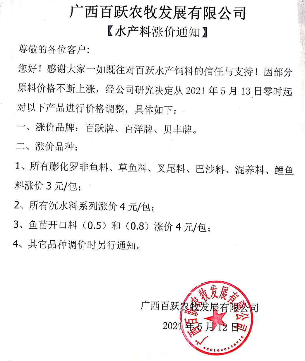 百躍農(nóng)牧發(fā)展有限公司漲價(jià)通知