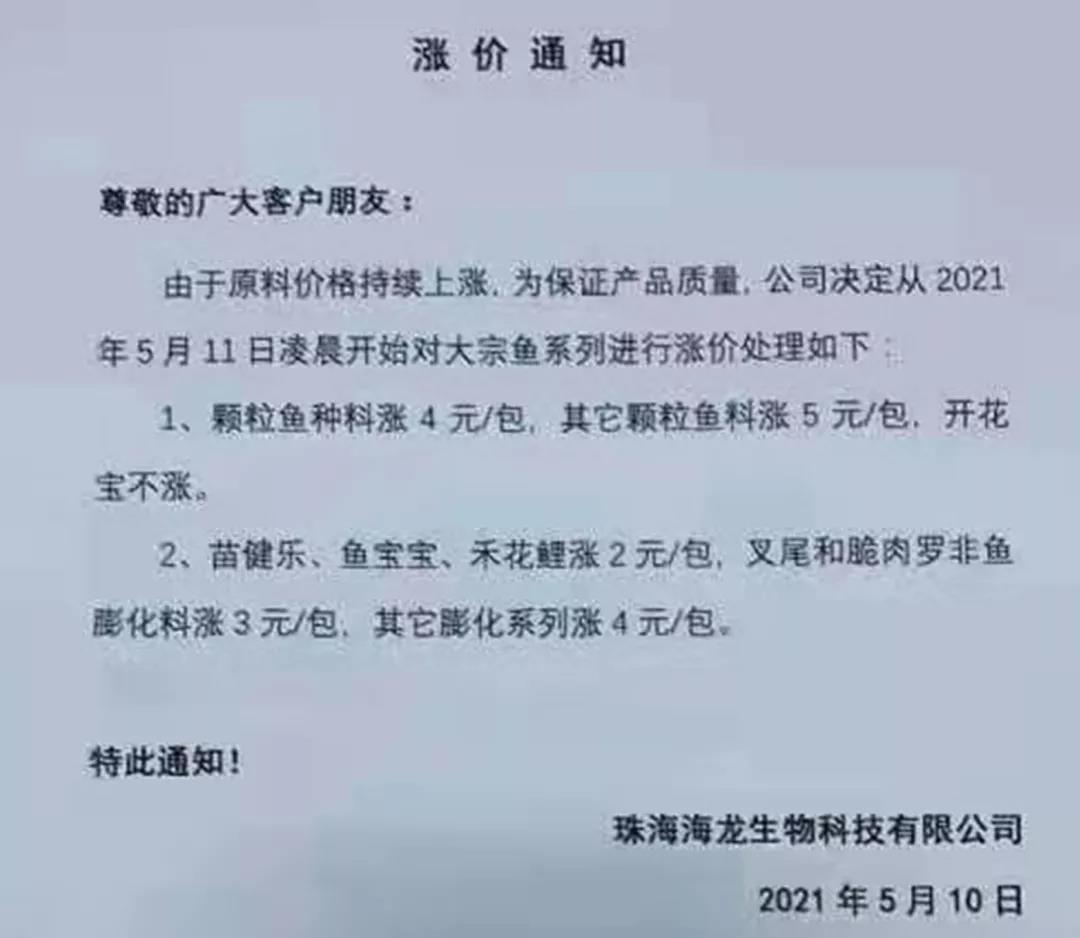 水產(chǎn)前沿網(wǎng)報(bào)道,水產(chǎn)料掀起牛年的第二輪瘋狂漲價(jià)潮!目前20多家料企在5天內(nèi)漲價(jià)!