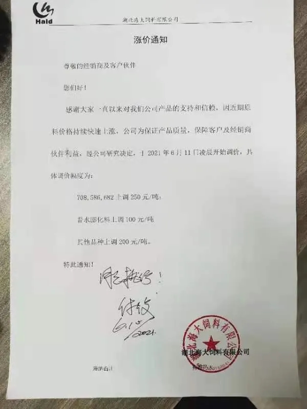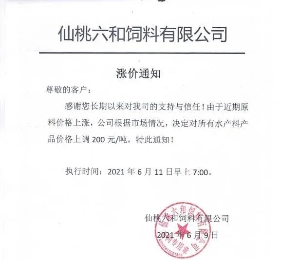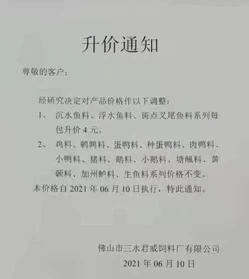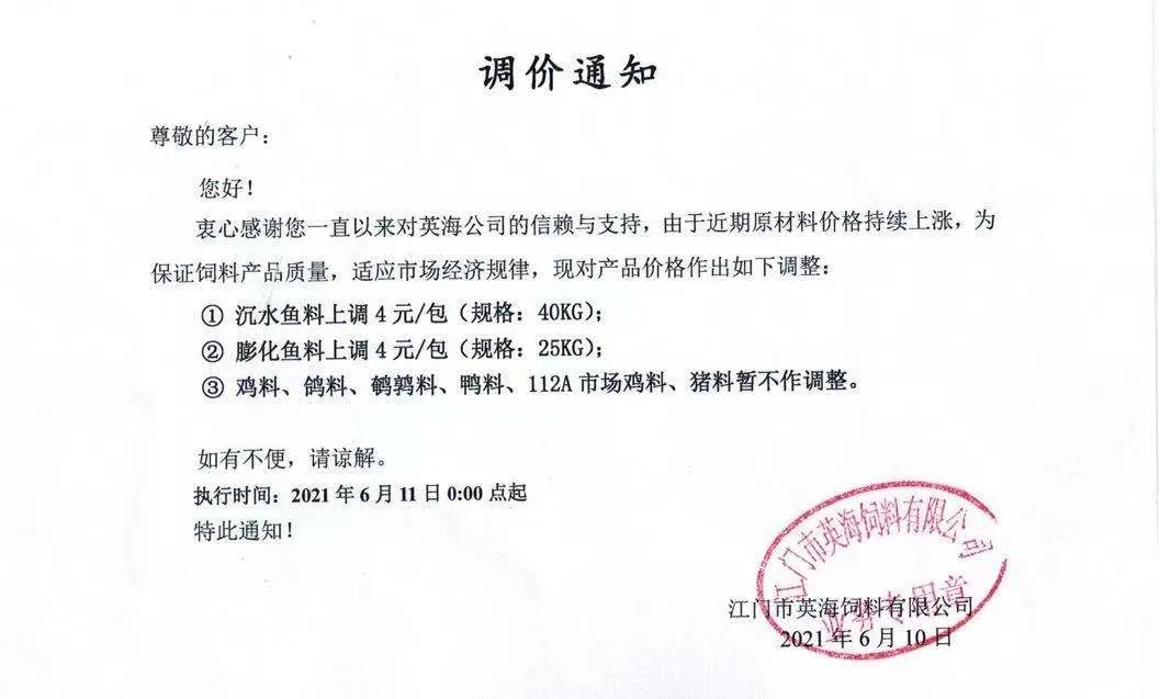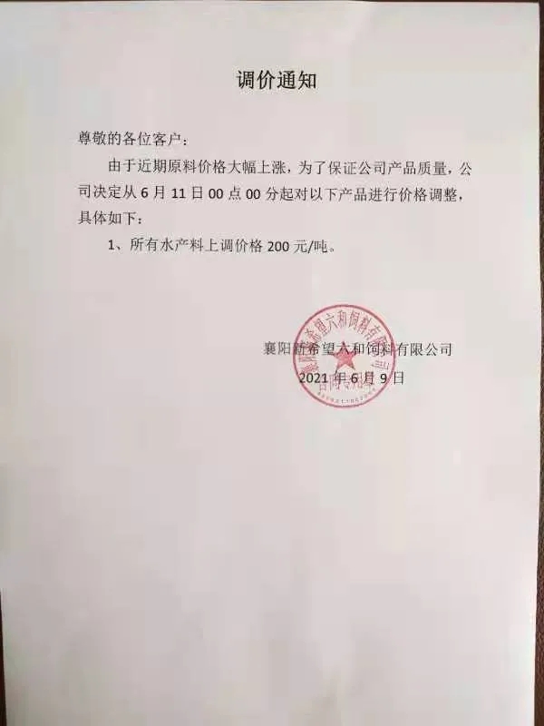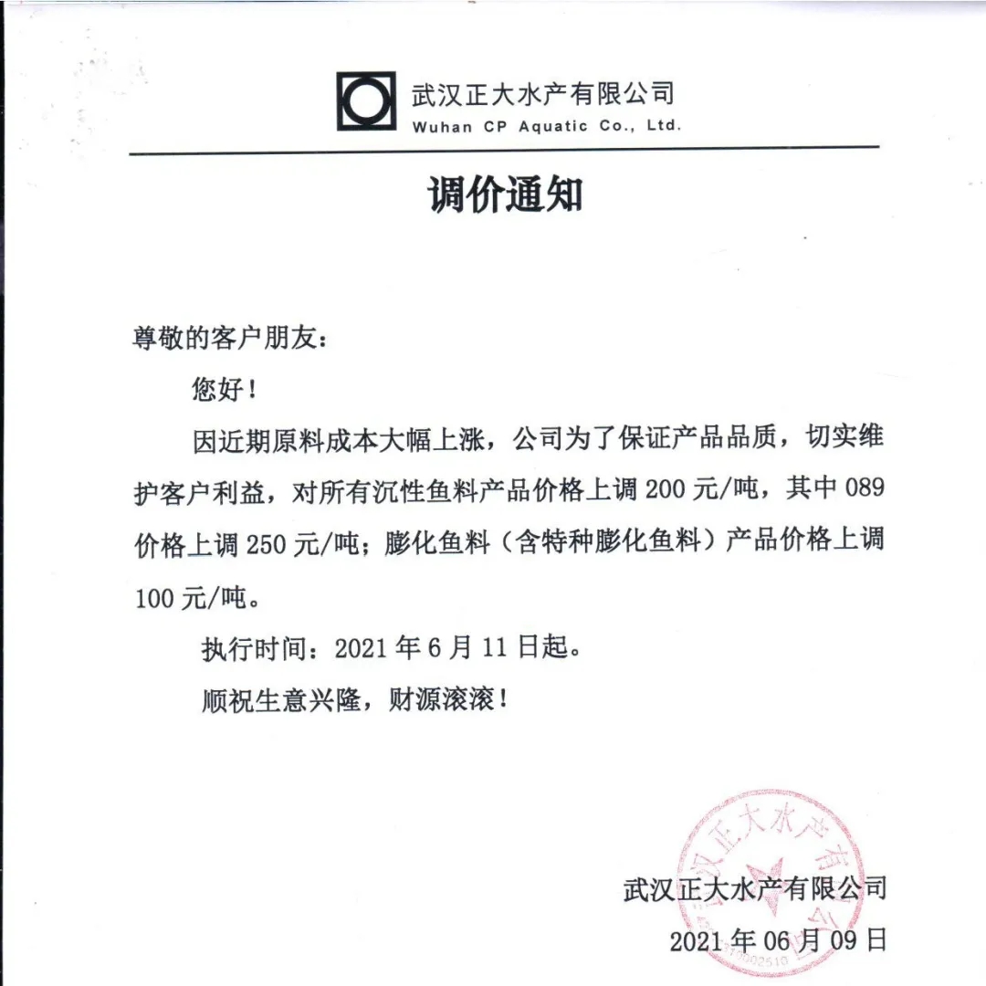 昨天,海大旗下幾大子公司珠海海龍、廣州海大、廣州海維、高要海大、新會奧特等同步上調普通淡水魚料價格,這是自5月11日在業中第一個挑起漲價企業,在不足一個月內又一次高調宣布飼料漲價,引發了行業不小震動、高度關注以及各種猜測。
