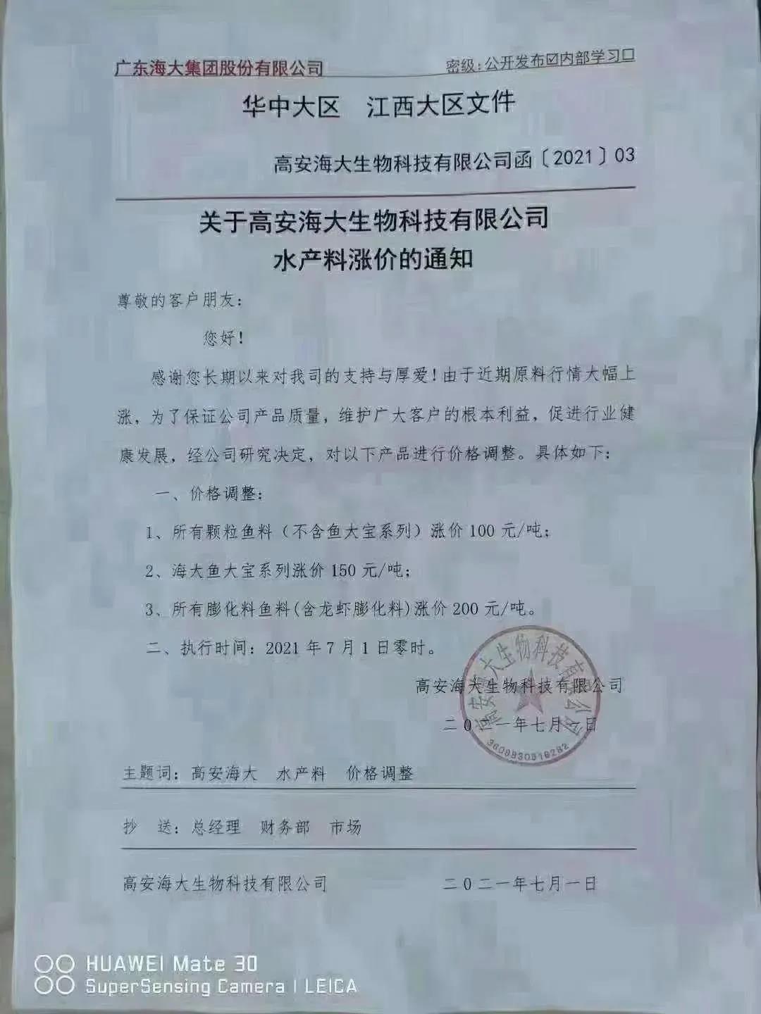 高安海大生物科技有限公司漲價通知