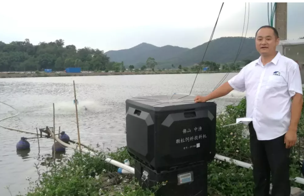 十幾年前我就一直和投料機打交道,這是一個很有想象空間的領域。針對中小型池塘,我們研發這款“180免搭臺正負壓風送式投料機”,免搭臺,加料操作安全,射程可達20米。可設定多達100個檔位,投料控制更為精準,使用更安全。千元級別的售價,讓養殖戶都可以用得上。這款產品最大的特點就是不用搭臺,在池塘邊就可以加料。通過一根PVC管,采用正負加壓,輕松地將飼料‘吹’到投料區,解決了裝料、投料過程中的安全隱患。目前已經得到廣泛的應用,咨詢購買的人很多。