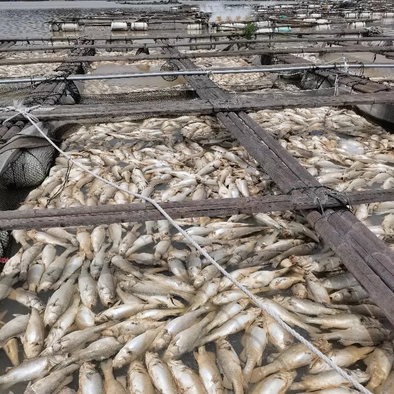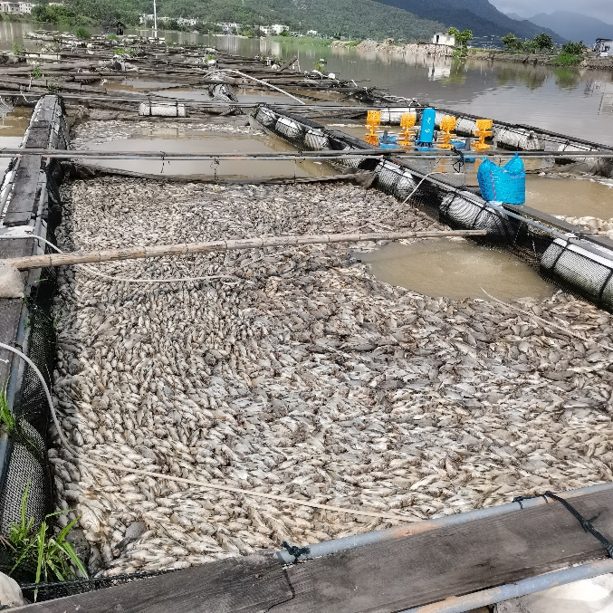當?shù)仞B(yǎng)殖戶鄭老板統(tǒng)計,“我有52格魚排,(此次)2斤2兩海鱸魚1萬條=22000斤;6兩海鱸魚2萬條=12000斤;羅非魚4萬條=16000斤;2兩黃翅魚3千條=600斤。總計損失60萬元。”