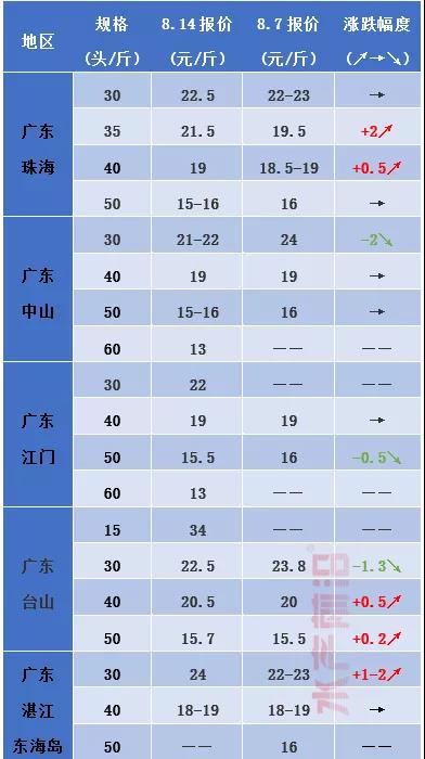 注:蝦價行情主要取決于市場供需,具體價格以售貨渠道和品質為主要考量,本報價僅供養殖戶參考!