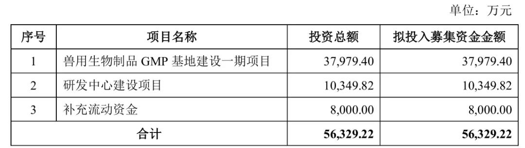 募集資金去向:增強(qiáng)獸用疫苗新產(chǎn)品的研發(fā)生產(chǎn),提升公司在獸用疫苗領(lǐng)域的研發(fā)實(shí)力和競(jìng)爭(zhēng)實(shí)力。獸用生物制品GMP基地建設(shè)一期項(xiàng)目建成后,將形成年產(chǎn)8億毫升滅活疫苗、18億羽(頭)份活疫苗的生產(chǎn)能力。