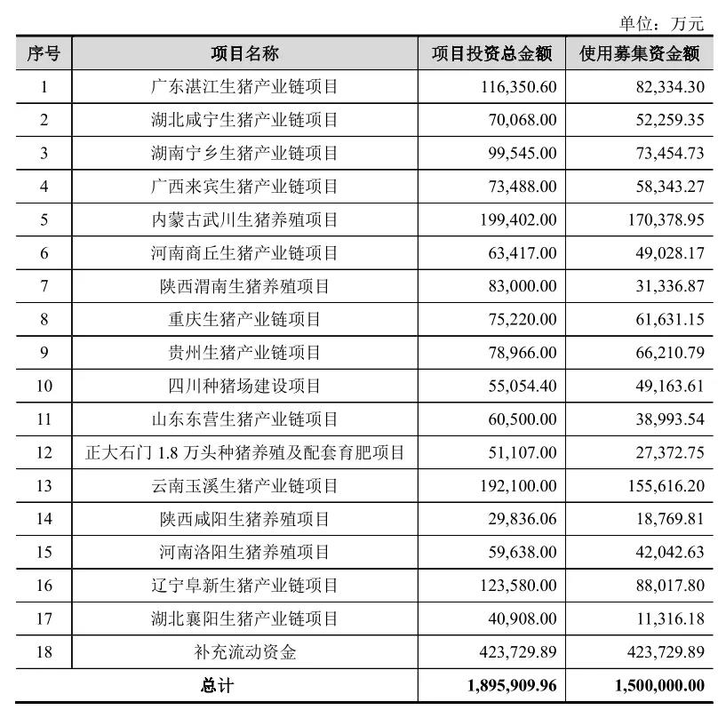 募集資金去向:進(jìn)一步完善公司生豬業(yè)務(wù)在全國(guó)大范圍的區(qū)域性覆蓋,鞏固公司在生豬產(chǎn)業(yè)領(lǐng)域的領(lǐng)先地位。