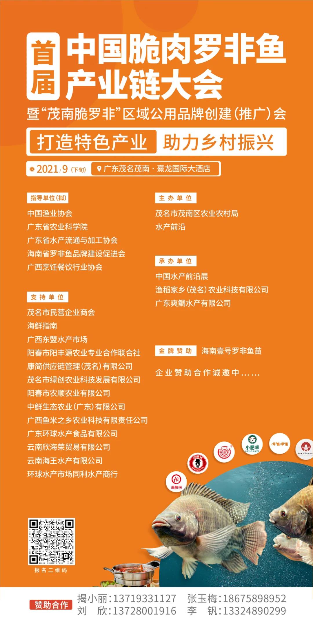 當前,國家鄉村振興戰略已全面推進,產業發展是鄉村振興的核心和基礎,脆肉羅非魚產業作為一個新興的,極具地方特色的產業,將成為鄉村振興的強有力“助推器”。基于以上背景,茂名作為“中國羅非魚之都”,茂名市茂南區農業農村局、水產前沿在消費大升級、產業大升級之際,擬于2021年9月下旬在廣東茂名茂南·熹龍國際大酒店舉行“首屆中國脆肉羅非魚產業鏈大會暨‘茂南脆羅非’區域公用品牌創建(推廣)會”,會議將以“打造特色產業,助力鄉村振興”為主題,召集飼料、種苗、養殖、加工等領域的專家和產業領導者,為您帶來一系列涵蓋脆肉羅非魚養殖技術、養殖模式、投喂策略、加工流通以及未來幾年的市場前景等全產業鏈的討論,通過把脈產業發展,把握發展新機遇,為傳統的羅非魚產業重新賦能,也為升級轉型中的水產養殖提供差異化增長的樣板。屆時,主辦方還將邀請12位來自廣西烹飪餐飲行業協會的一級名廚,烹飪24道風味脆肉羅非魚菜品,讓您現場品嘗脆肉羅非魚的獨特魅力!您一定不能錯過這場關于“脆非”的產業盛宴!