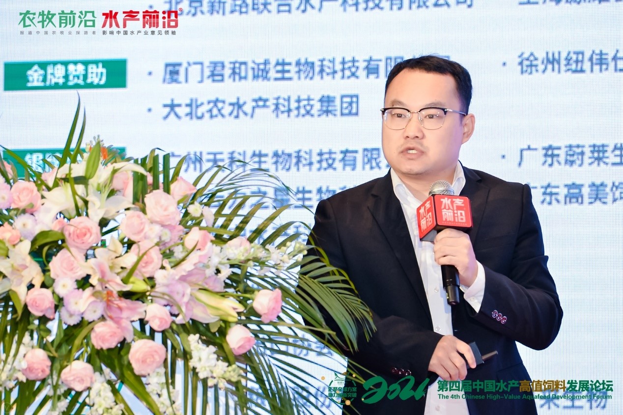 10月11日,“匯聚全球方案·協力創新突破”鯤鵬論壇——2021第四屆中國水產高值飼料發展論壇于青島海天大酒店繼續進行。論壇由中國水產前沿展主辦,水產前沿雜志、農牧前沿、水產前沿網承辦,美國大豆出口協會(USSEC)聯合承辦,樂達(廣州)香味劑有限公司、豐尚農牧裝備有限公司、四川利達華銳機械有限公司、土耳其羅達明聯合公司、北京奧特奇生物制品有限公司、安琪酵母股份有限公司、常州谷德機械有限公司、北京現代洋工機械科技發展有限公司、成都通威動物營養科技有限公司、廣州飛禧特生物科技有限公司、江蘇富海生物科技有限公司、青島瑪斯特生物技術有限公司、北京新路聯合水產科技有限公司、上海源耀農業股份有限公司協辦。