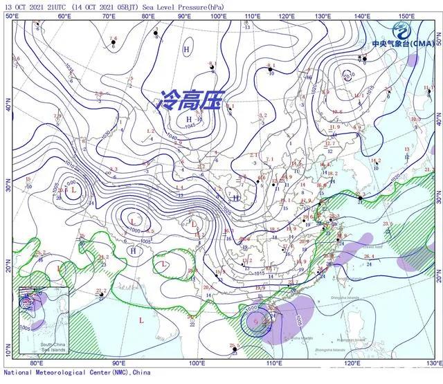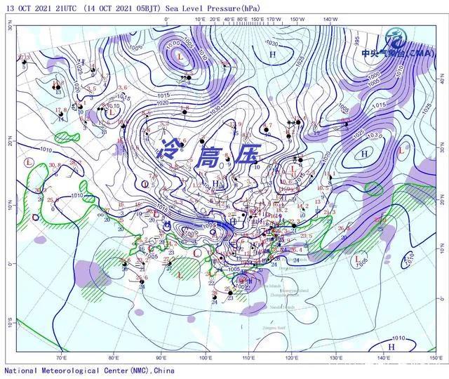 北京時間10月14日凌晨5點,我國以北的蒙古高原和西伯利亞上空,強盛的1030百帕高壓線覆蓋了大片區(qū)域,高壓中心位于蒙古高原西部,中心氣壓超過1045百帕,這是大量密度大的寒冷空氣下沉到地面附近堆積起來形成的冷高壓,這么大范圍且強盛的冷高壓在這個位置出現(xiàn),表明冷空氣已經(jīng)堆積完畢,即將南下我國中東部。