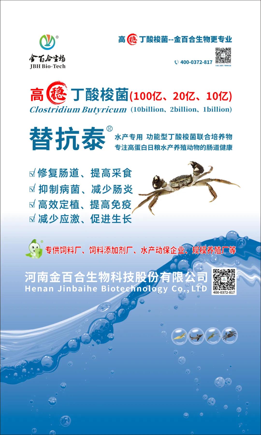 開發了替抗泰水產專用產品功能性丁酸梭菌聯合培養物,微生態制劑配伍時講究“君臣佐使”使用,具有以下效果:1.誘食促長、修復腸道。其中丁酸可作為水產動物腸道細胞的能量物質,可有效促進動物腸道快速修復,減少炎癥、白便的發生。2.抑菌調腸,增強免疫。丁酸梭菌可快速定植于腸道,改善腸道環境,抑制致病菌生長,調節腸道平衡。同時增強腸道屏障功能,提升機體免疫。3.保肝護腸,減少應激。通過提高飼料蛋白的消化率,減少高蛋白日糧對肝臟的高負擔,同時提高腸道免疫功能,減少氧化應激反應的發生。4.降低氨氮、改善水質。有效分解水體有機質,降解氨氮、硫化氫、亞硝酸鹽等有害物質,抑制水中的有害菌及有害藻類的繁殖生長,調節水體菌藻平衡,有利于水產動物健康生長。
