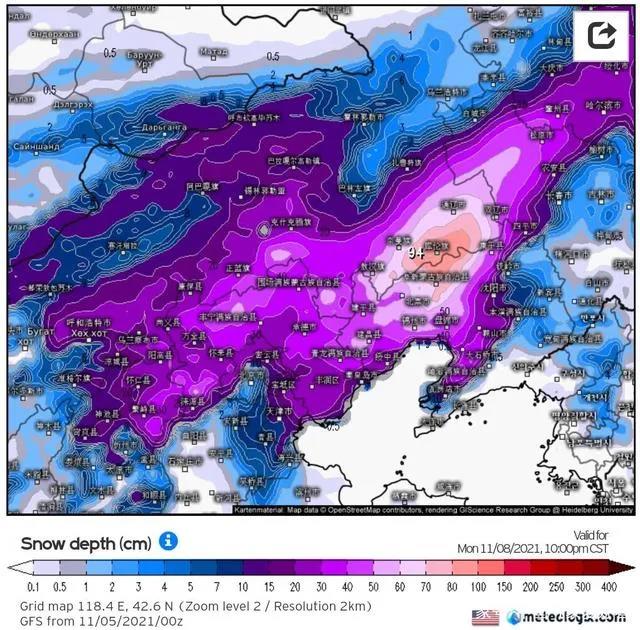 超級計算機的雪深預報中則指出,接下來幾天,我國北方地區的暴雪將主要接集中在內蒙古、京津冀晉、黑吉遼等8個省區市,多地積雪深度將達到15厘米以上,尤其是遼寧中西部和內蒙古東部,更是可能出現80厘米以上的恐怖積雪,在11月上旬,這樣的降雪和積雪水平多省可能會打破歷史紀錄。