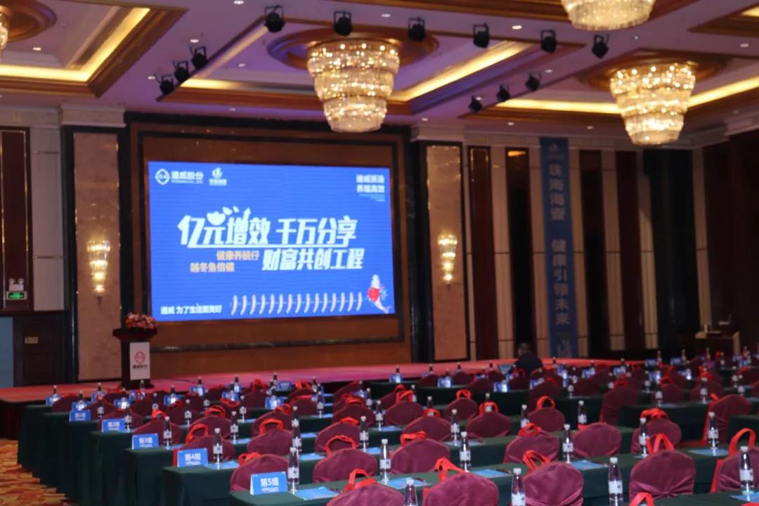 鄧金雁總經理在致辭中表示,通威人深耕水產行業,了解客戶的本質需求,為客戶提供健康的產品,優質的服務,為客戶增效,是義不容辭的責任。近年來,因魚類冬季損耗和春季發病帶來的經濟損失,為廣大養殖朋友帶來了沉重的負擔。這一趨勢下嚴重損害養殖戶的基本利益,產業發展也收到制約。珠海海壹針對客戶及市場需求,推出更適合冬季使用的越冬版魚倍健,正是踐行了通威質量方針,想用戶之所想,急用戶之所需,依托通威股份上下之力適時推出應季產品,為用戶創造利益最大化。鄧總強調,飼料的質量關系到養殖的品質和安全,對于養殖效率效益的影響尤為深遠。在用戶的督促幫助下,珠海海壹將緊盯產品品質,把“質量方針”落到實處,以全新產品搭配全新模式,助力草魚行業健康發展。