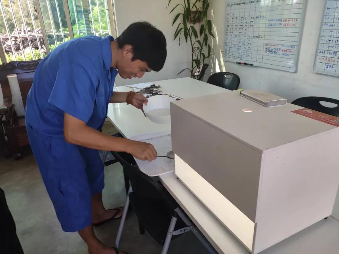 盧國興介紹,創(chuàng)業(yè)前,曾在一家知名苗企工作過多年,負(fù)責(zé)技術(shù)和管理工作,遇到過苗場技術(shù)人員和管理人員都會遇到的場景和問題,比如每天記錄大量的數(shù)據(jù),而到真正想查閱時,翻找數(shù)據(jù)是一件工作量頗大的事情。確實,“記錄”、“數(shù)據(jù)”、“搜索”,對于絕大部分業(yè)者來說都是一件不容易的事情,而這些也是關(guān)乎生產(chǎn)與利潤的關(guān)鍵環(huán)節(jié)。因此,在對市場有了一定的了解之后,盧國興開始尋找團隊一起創(chuàng)業(yè),直到現(xiàn)在,“智慧苗場”蝦苗數(shù)苗器已經(jīng)在各大小育苗標(biāo)粗場中廣泛使用,并且設(shè)備已經(jīng)優(yōu)化到20秒點完1.5萬尾蝦苗,甚至在沒有移動網(wǎng)絡(luò)的情況下也可以準(zhǔn)確點苗。“成本低,本土化”是其最大的優(yōu)勢。“從代替人工數(shù)苗,到逐步升級優(yōu)化,我們的數(shù)苗器越來越成熟,甚至在國內(nèi)客戶推薦下遠(yuǎn)銷東南亞,而快漁團隊想要做的不僅是這些。”他說道。