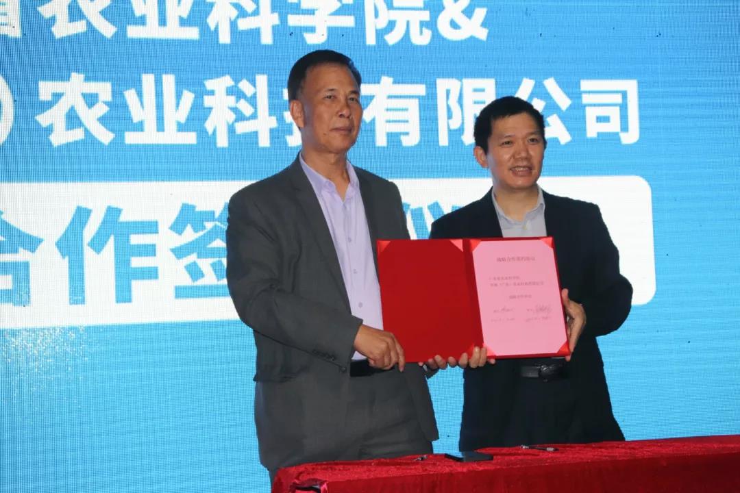 廣東省農業科學院教授李家洲博士和華漁(廣東)農業科技有限公司董事長楊省儒簽署戰略合作