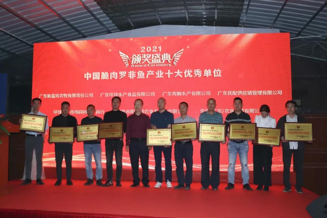 最后,會議為“中國脆肉羅非魚產業十大優秀單位”舉行了頒獎典禮。廣東新富民農牧有限責任公司,廣東環球水產食品有限公司,廣東爽鯛水產有限公司,廣東優配供應鏈管理有限公司,環球水產市場同利水產商行,陽春市陽豐源農業專業合作聯合社,華漁(廣東)農業科技有限公司,漁稻家鄉(茂名)農業科技有限公司,珠海斗門明業水產專業合作社,中山市匯誠農業發展有限公司分別獲得此項殊榮。