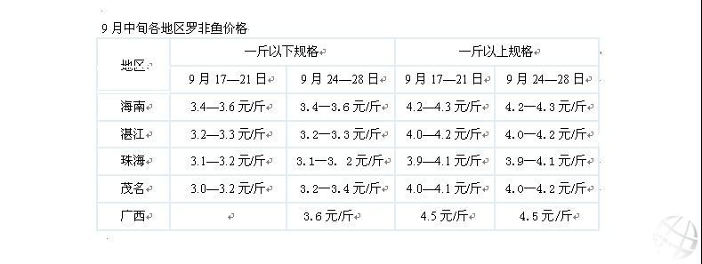 從各地區(qū)羅非魚價(jià)格表可看出,與上周相比價(jià)格基本沒有發(fā)生變動(dòng),仍然呈現(xiàn)出平穩(wěn)的發(fā)展趨勢(shì)。一斤以下規(guī)格的魚,茂名地區(qū)價(jià)格略有上升。