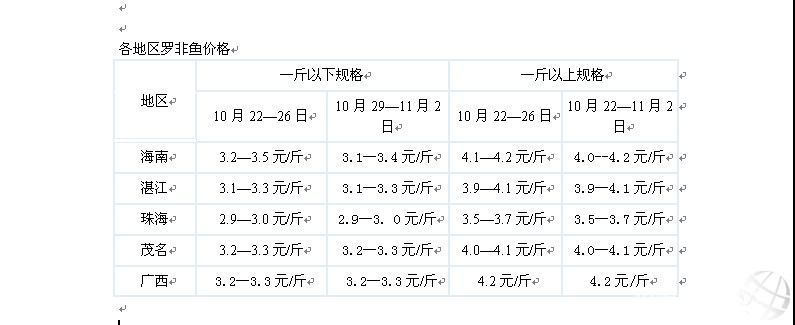 “海南從10月28—29日開始跌價,現在賣魚的人很少,因為現在魚也不是很多了,而且價格又不理想,養殖戶還不想賣,看看市場行情,等價格回升才賣吧!焙D喜O業周旭總經理說。湛江地區也出現類似現象,“養殖戶都不打算賣魚,大家都在等魚的價格回升了才賣,珠海那邊的魚不賣完價格也很難回升啊!兵P凰飼料湛江片區呂勝勇經理如是說。