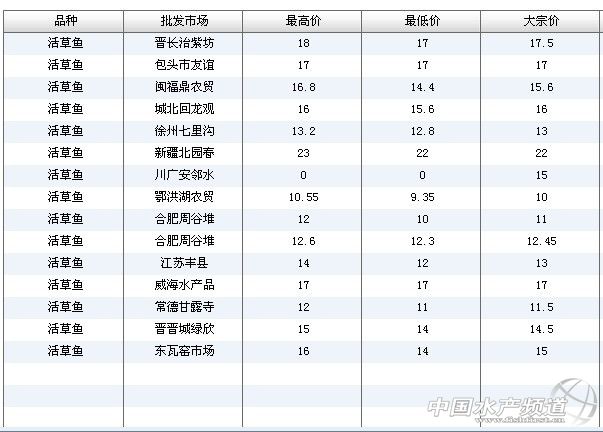 (中國水產頻道水產價格信息共享Q群:245296163,歡迎提供各種水產品一線價格信息!)