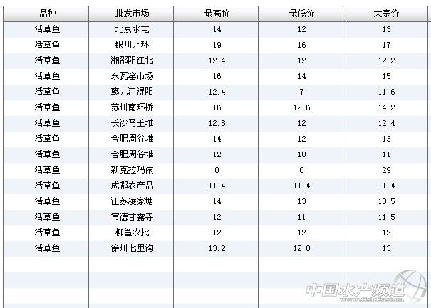 【關(guān)鍵字】:草魚 價(jià)格行情 批發(fā)市場(chǎng)