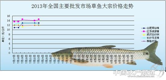 中國水產頻道獨家報道,7月23日全國主要批發市場草魚蝦價格行情如下: