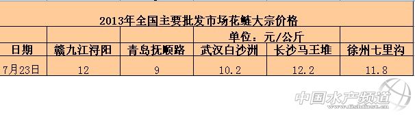 2013年7月23日全國主要批發市場花鰱價格行情