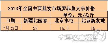 2013年7月23日全國主要批發市場羅非魚價格行情